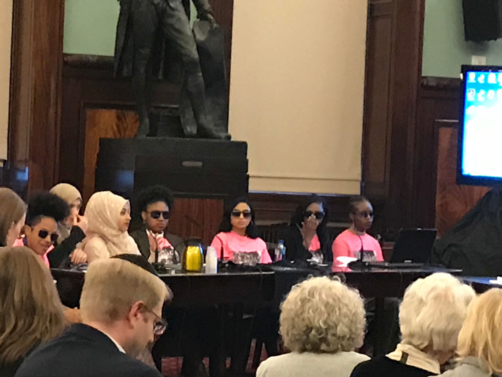 They wore sunglasses and neon pink t-shirts emblazoned with the iconic photo of the Elizabeth Eckford, who walked through angry mob to integrate a high schooI in Little Rock, AK, in 1957.