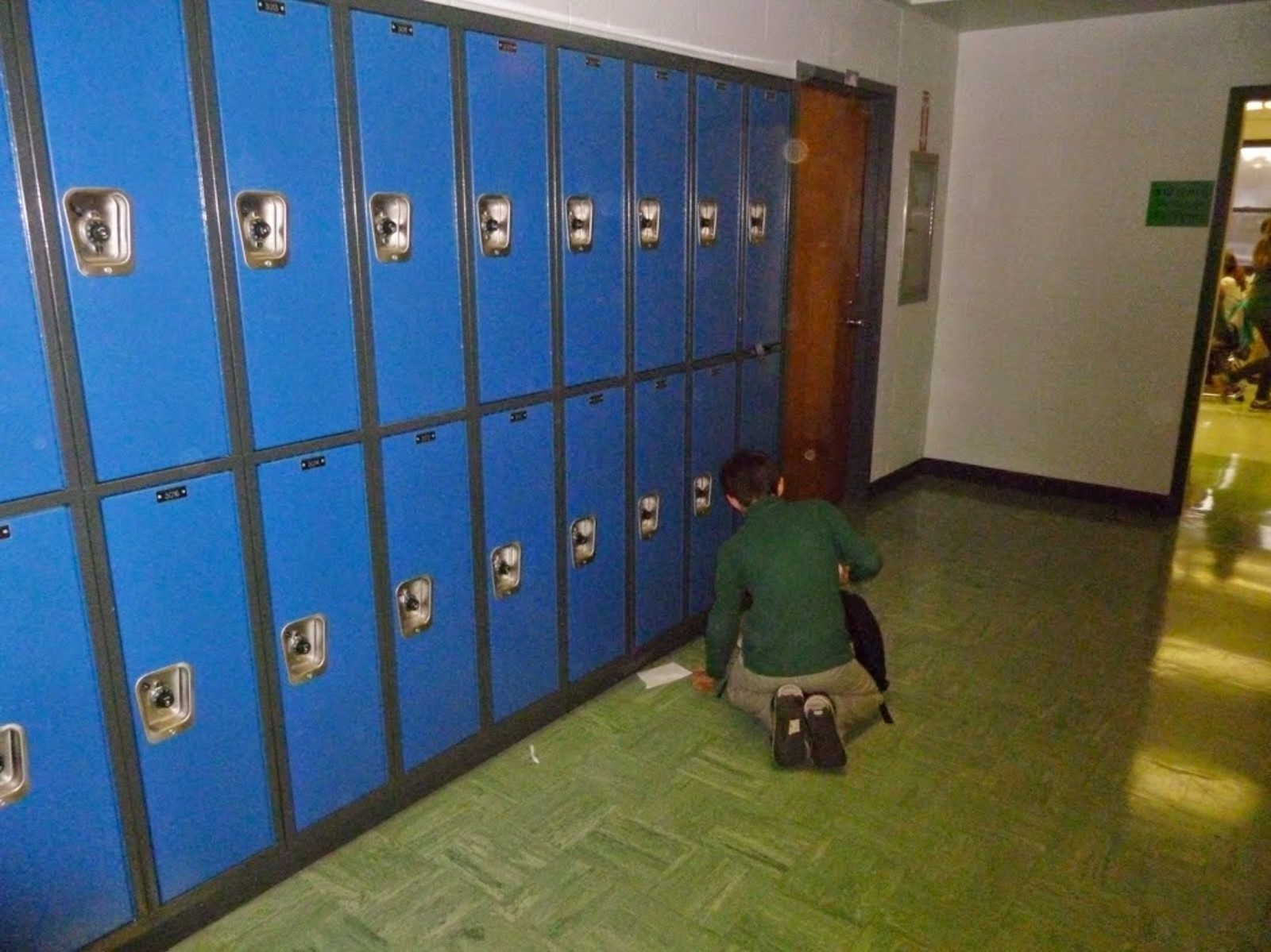 However, the hardest thing to adjust to is having a locker. A locker is a blessing, yet a burden. Sometimes, the lock doesn't always open. During homeroom, I forgot a book, so I went to my locker again to get it, but as I was turning the lock, the bell rang. Also, the locker can get very messy, which is an issue. But, worst of all, I have a bottom locker. I am always hitting my head on the top locker. The top locker door is still open, and my head really hurts.