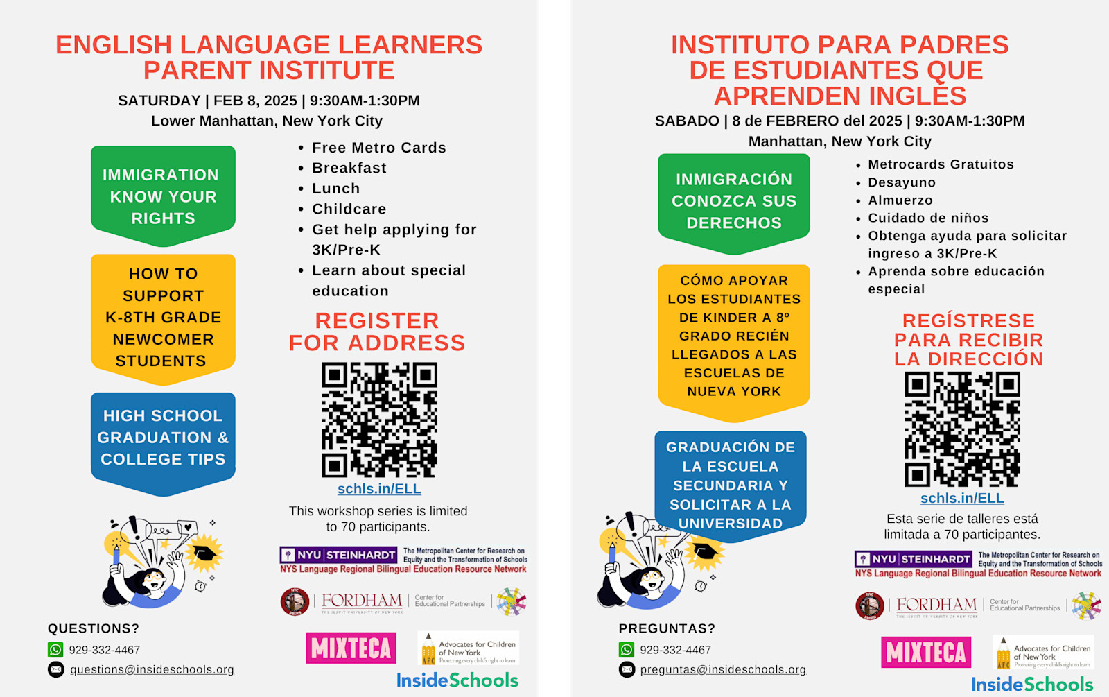 Collaboration between InsideSchools and NYS Statewide Language NYU RBERN, and the NYC RBERN at Fordham University and Mixteca and Advocates for Children.