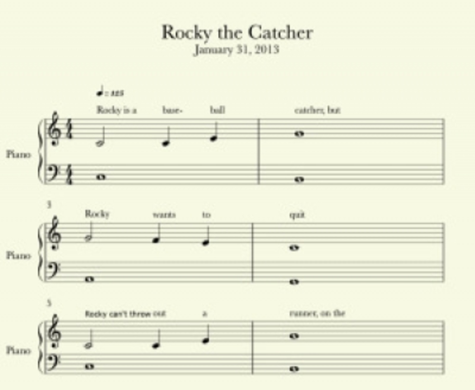 Although I didn't even try to get Brooks to participate in writing the piano score or notating the music into an iPad app so we could print it (Notion), he did follow an aggressive practice schedule for singing and playing the song so that we could make the video.