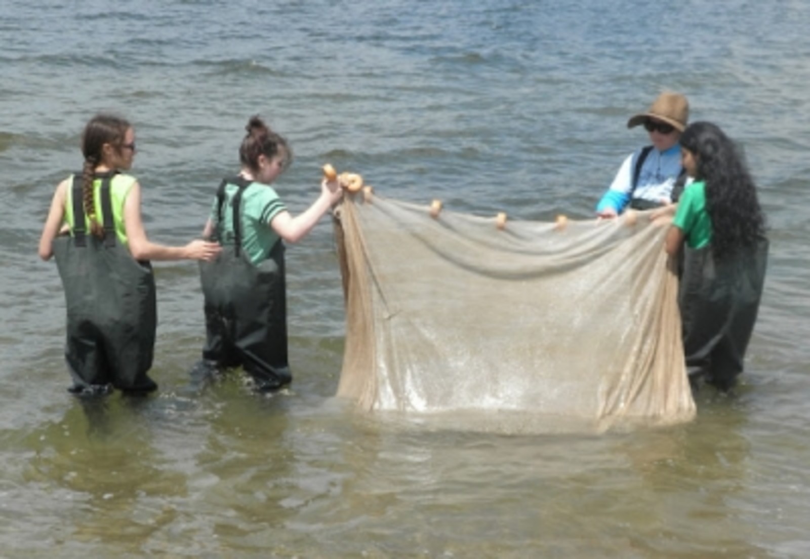 The City Parks Foundation’s Green Girls Summer Institute, a free environmental science program for middle school girls, engages up to 30 girls in hands-on activities and field trips that expose them to a wide range of topics, including urban ecology, biology, zoology and botany. During our visit, the girls traveled from their home base at the YMCA in Long Island City to the Coastal Classroom at Kaiser Park in Brooklyn. At the park, they donned waders and went waist-deep into the New York Harbor, using large nets to catch small fish and invertebrates. After closely observing the specimens they had collected, the girls discussed concepts like ecosystems and food chains in the context of the harbor.