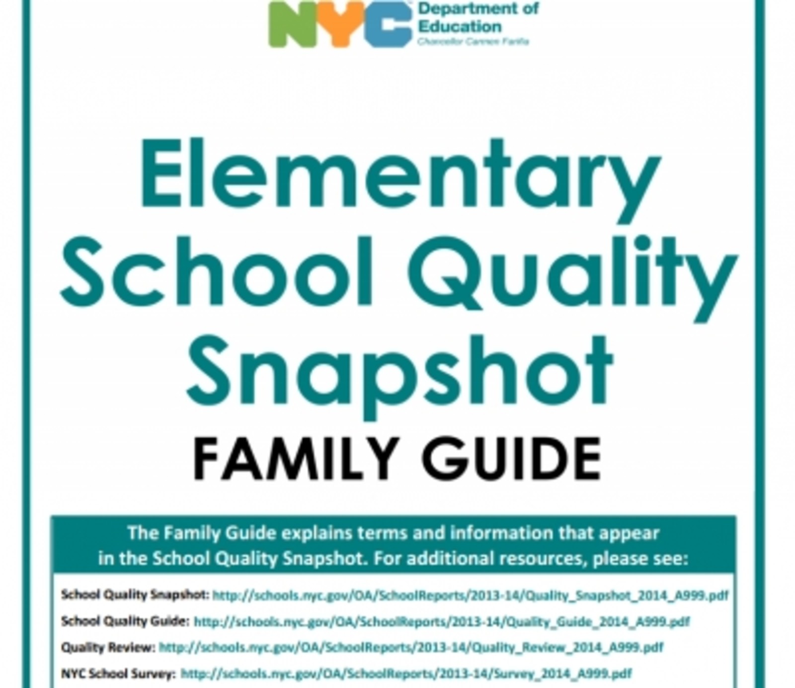 Where the old Progress Reports crowded general descriptive and demographic information about each school in less than a quarter of the first page, the new Snapshots open with almost an entire page dedicated to an easy-to-read menu of important information such as SAT scores, student and teacher attendance rates, length of principal experience at that school and whether the school shares space with other schools. For middle and high schools, the "School Overview" allows each school to introduce itself in its own words, which can be helpful to prospective students looking for a particular focus or vibe. Half of the next page is dedicated to key results from the Quality Review, which are based on two-day school visits by education experts. Similar to dropping the overall letter grade of the old system, the new Snapshots also drop the one-word "rating" from the Quality Review in exchange for answers to questions that parents understand and care about, such as "How interesting and challenging is the curriculum?"