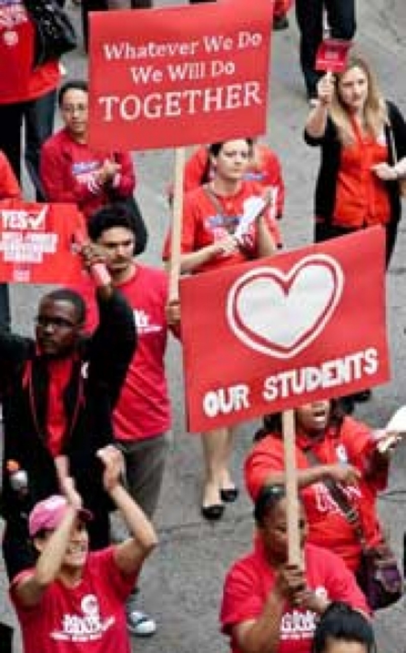 MONDAY: Some New York City teachers are rallying to support the Chicago teachers who were on the picket lines Monday morning. Chicago's Democratic Mayor Rham Emanuel says the city has made a generous offer that would raise teachers' salaries. But leaders of the reform-led Chicago Teachers Union say the strike is not just about money -- they want improvements made to Chicago's schools, including smaller class sizes, and a nurse and a social worker in every school. They also note that the proposed raises would be offset by a hike in health care costs.