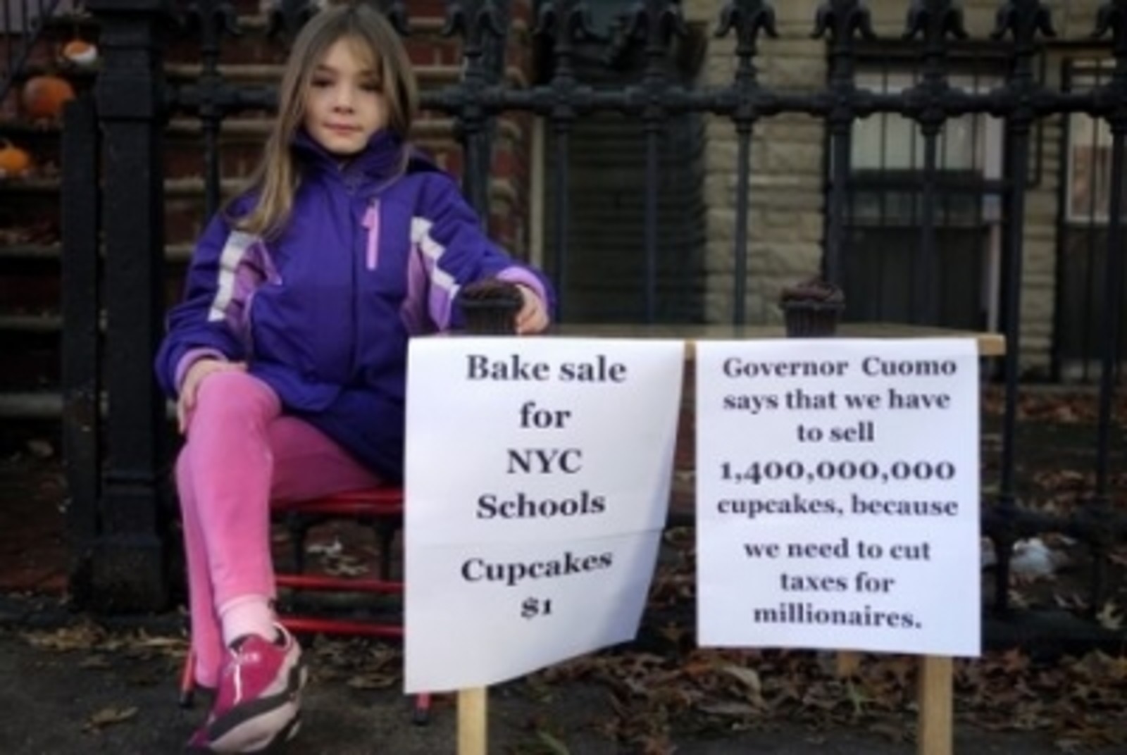 Adam Grumbach, whose daughter is in 2nd grade in a Brooklyn public school, is one of the parents spearheading the protest. He says when he first toured his daughter's school there were 20 to 22 children in each kindergarten class. When she enrolled in 2009 there were 25 kids in her class. In 1st grade there were 28 children, and this year there are 30. "We have watched her hardworking and dedicated teachers struggle, and it feels like we are watching them burn out before our eyes," he said. "To learn that during these times Governor Cuomo, who has not hesitated to demand concessions of all public employees, is also seeking a tax cut for millionaires is infuriating. And so we decided that we would organize an event in front of his New York office."