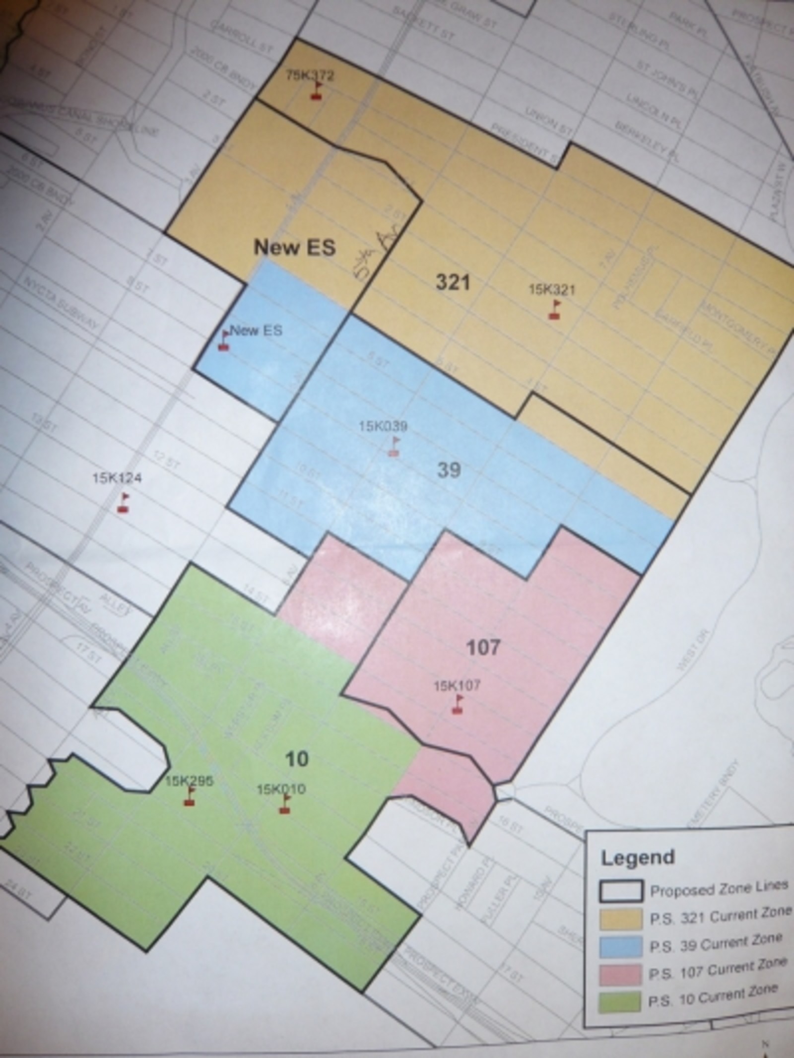 A small portion of the southwestern end of PS 321 and the western end of PS 39 would be reassigned to a new school that would serve 275-335 students in the St. Thomas Aquinas building. Residents of two blocks near the park between 4th and 5th Streets (between 7th Avenue and Prospect Park West) woiuld be transferred from PS 321 to PS 39 to keep enrollment level at PS 39. PS 107 would lose five blocks on their western and southern sides to PS 10.