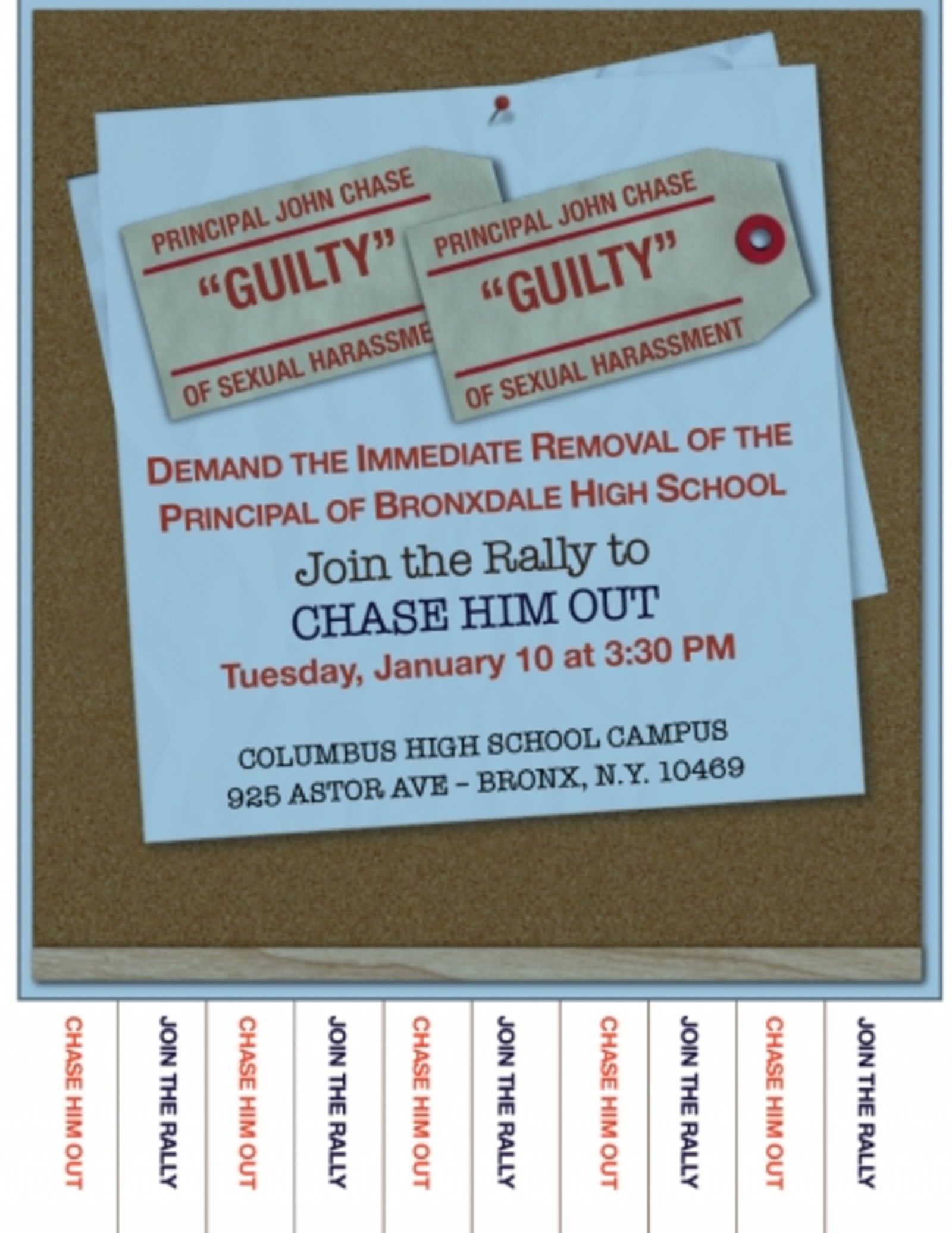 Teachers, women's groups and elected officials will rally Tuesday afternoon (Jan. 10) to demand that the Education Department remove a Bronx principal who made lewd remarks to staff members.