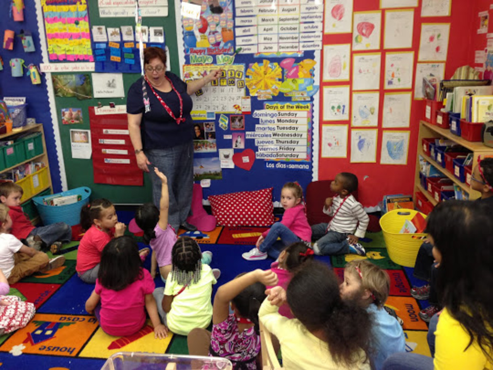 The other, more common model is a self-contained dual language program in which about 10–15 seats are allocated for ELLs, and about 10 seats for students proficient in English. Baez says she prefers the side-by-side model because more children can participate.
